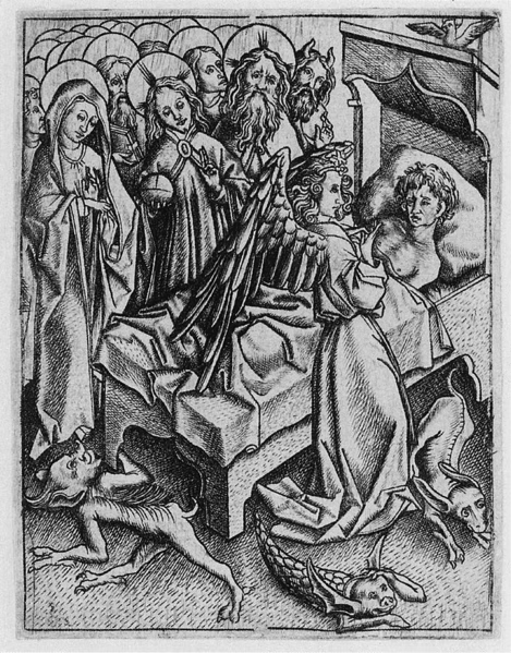 The Ars Moriendi, or “Art of Dying” was a genre of Christian spirituality that rose to prominence after the disaster of the Bubonic Plague wiped out up to fifty percent of Europe’s population. The present work was written in the mid-fifteenth century, probably by a Dominican friar, and reminds you, the reader, that you also will soon die.