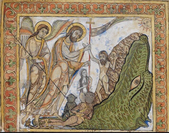 In the first pages of Genesis (3:1-19) we encounter the story of original sin, precipitated by Eve’s encounter with the strange figure of the serpent in the garden. This can be no ordinary serpent. Snakes don’t talk, and they also don’t tempt people, and we are not original in viewing the serpent as a fallen angel. And so in this issue on death we might look to the linked curses that God gives Adam, Eve and the serpent: Adam and Eve will return to the dust, but the serpent will eat the dust. It is not for nothing that the gates of Hell are often portrayed as a mouth, a Hellmouth: the mouth of a monstrous serpent.